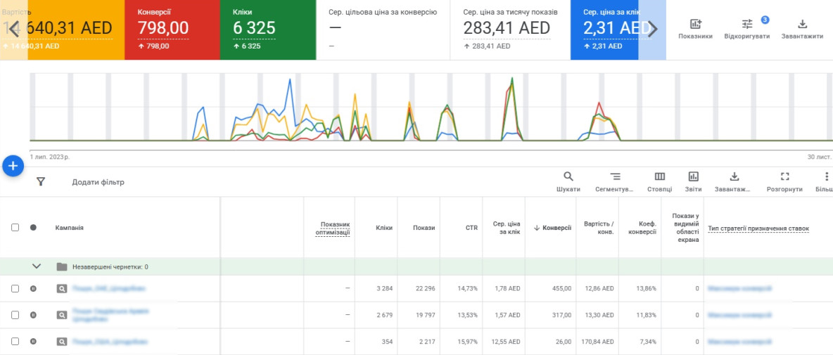 Вже на старті з’явився стабільний потік лідів, але вартість частини заявок була вищою за цільову. І саме тут почалась справжня робота. Ми детально проаналізували кожен сегмент: які аудиторії конвертуються краще, які запити перегрівають аукціон, де є потенціал для зниження ставки без втрати обсягу. Крок за кроком відсікали неефективні покази, коригували стратегії, посилювали сильні напрямки — щоб кожен вкладений дирхам працював на результат, а не розчинявся в конкуренції.